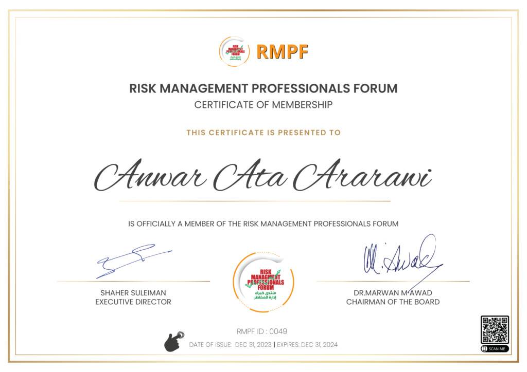 He is an ISO certified Master in Risk Management and ISO 31000 Certified Risk Manager, Consultant & Trainer