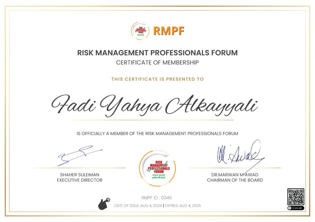 He is an ISO certified Master in Risk Management and ISO 31000 Certified Risk Manager, Consultant & Trainer