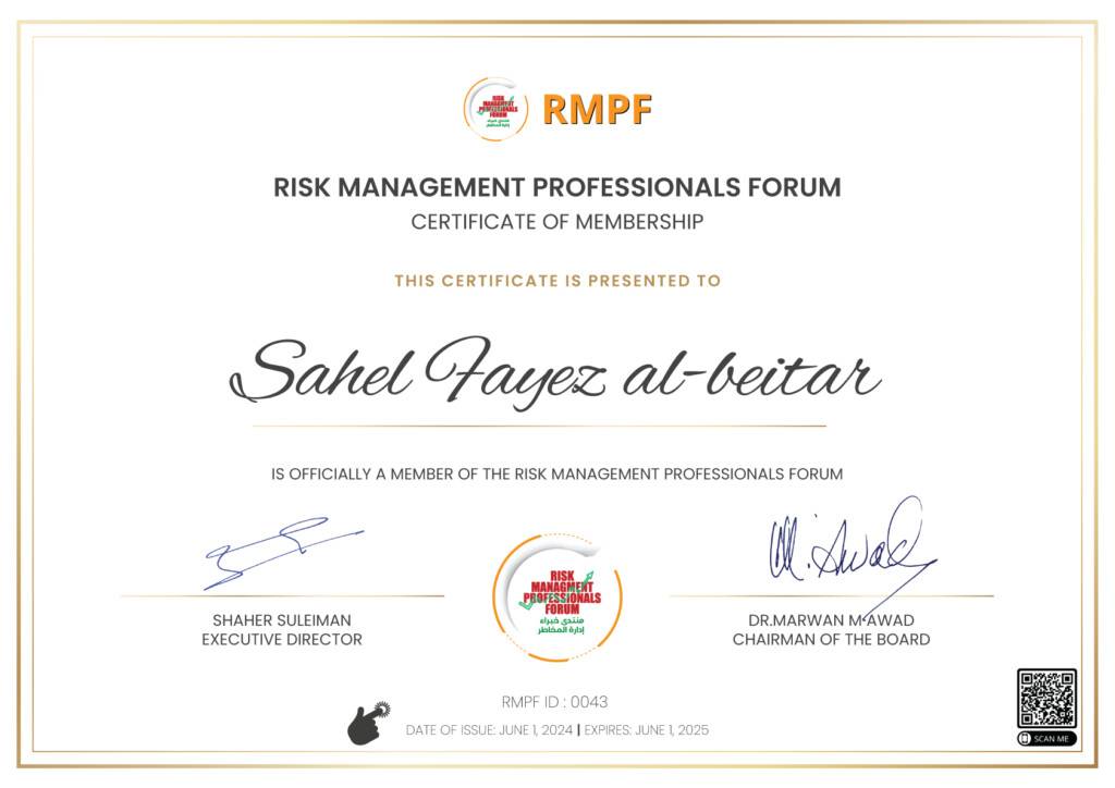 Eng. Ibrahim Tawalbeh is recognized for his strategic approach to risk management, having worked extensively with organizations to ensure compliance, improve governance, and optimize risk-related decision-making. Additionally, as a consultant and trainer, he empower organizations and professionals to develop robust risk frameworks, ensuring sustainable success in today’s volatile business environment.